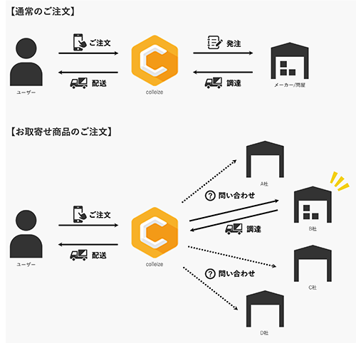 colleizeでは、各メーカー様が指定した予約期間の締切後や、商品発売後の手に入りにくい商品など、お客様からの注文を承り次第、都度各メーカー様および各問屋様へ個別に在庫確認と再製造依頼を行っています。